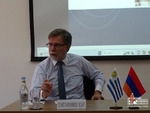 On July 12th, the Ambassador of the Oriental Republic of Uruguay, H.E. Mr. Eduardo Rosenbrock Bidart delivered a lecture at the Diplomatic School of Armenia. The Ambassador introduced Uruguay’s foreign service system and the country’s foreign policy strategy in bilateral relations and at multilateral platforms. He also spoke about the close ties between Armenia and Uruguay.
