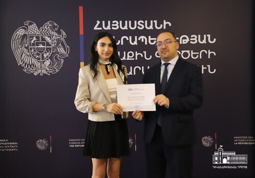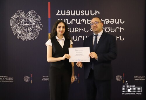 During the event, the Secretary General of the Ministry of Foreign Affairs of the Republic of Armenia, Davit Karapetyan, congratulated the graduates on successfully completing the programme, emphasized the importance of diplomatic education and professional training in foreign policy and wished them success in their future professional careers.